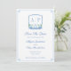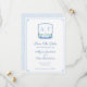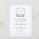 Desde el principio, el boda recibe a sus huéspedes con elegancia en esta coqueta coqueteada que sirve de escudo a las acuarelas con hortensias azules y blancas y jarrón de jengibre.