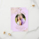 Estas hermosas tarjetas son una excelente manera de hacer saber a sus amigos y familia que deben guardar la fecha para su próximo boda. Cuentan con un diseño lila morado y dorado con tu foto en un marco ovalado rodeado de adornos dorados de encaje de Relieve metalizado falso y elegantes letras con tus nombres, fecha boda y ubicación. La parte de atrás tiene un lindo gráfico de "lápiz en" con espacio para una nota que puede incluir un sitio web donde sus invitados pueden ir para más información.