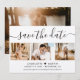 Elegante foto boda de papel kraft para guardar la tarjeta de fecha con un moderno tipo de letra de guión y un collage de fotos. Personalice fácilmente esta tarjeta con sus imágenes y detalles del boda, incluido un sitio web del boda si procede.