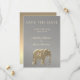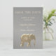 Lujosa, elegante, fondo de plata de arenisca, con monograma gigante único - elefante de lámina de oro - símbolo de amor, fertilidad y buena suerte. Invitación de guardar la fecha de boda elegante, moderna y única de plata y oro.