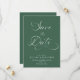 Fije el tono para su día de boda con esta elegante y Minimalista Boda Verde Forestal Salvar la Fecha, diseñada para traer un toque de sofisticación que encaja perfectamente con su tema boda. Con una frondosa paleta verde de bosque, esta opción Save the Date prepara el escenario para una apariencia coherente y elegante. No hay que preocuparse por encontrar la combinación perfecta para el estilo boda, este elegante y minimalista diseño combina con la elegancia de cualquier suite nupcial. Personalizar cada detalle para convertirlo realmente en tu propio, desde fuentes a colores, asegurando que se alinee con tu visión única. ¿Quieres ahorrar tiempo? Envíelo digitalmente, para que todos reciban el mensaje instantáneamente. Pide el tuyo y combina sin esfuerzo el estilo de tu gran día.
