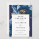 Reserva La Fecha Elegante boda floral azul marino y dorado