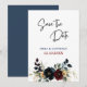 Reserva La Fecha Elegante boda floral azul polvoriento azul marino