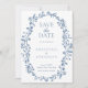Reserva La Fecha Elegante Boda floral azul y azul victoriano
