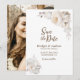 Esta elegante boda crema floral salva la fecha está diseñada para las parejas que buscan sofisticación y belleza intemporal en el anuncio de su día especial para los seres queridos. Tu foto favorita de ti y de tu amada se puede incluir en el reverso, haciendo de esta fecha una invitación verdaderamente única mientras traes alegría a los buzones de tus invitados y evoca emoción por tus próximos nupcias con esta fecha de reserva.