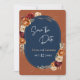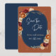 Elegante boda floral de la marina naranja de otoño con flores Save the Date. Establezca el escenario para su boda con este elegante naranja de otoño y floral marina Guardar la tarjeta de fecha. Con una rica paleta de colores de marina profunda y un cálido naranja de terracota, acentuado por elegantes florales de otoño, este diseño captura perfectamente la esencia de una celebración de otoño de moda. Una manera sofisticada y atemporal de anunciar su gran día, asegurando que sus invitados ahorren la fecha para su inolvidable boda.