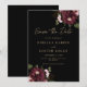Reserva La Fecha Elegante Boda floral negro de Borgoña