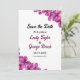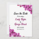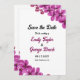 Esta elegante boda floral, salvo la invitación de fecha, es perfecta para un moderno boda de verano. El diseño es sencillo y cuenta con hermosas flores de orquídea morada con elegante caligrafía negra en un fondo blanco.