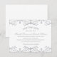 Anuncios de boda vintage elegantes y antiguos inspirados en guardar la fecha con un diseño de borde decorativo ornamentado de color gris platino / plateado que tiene una apariencia metálica con textura brillante. La opción de cartulina Luxe Pearl Shimmer realza el aspecto metálico de los colores dorados.