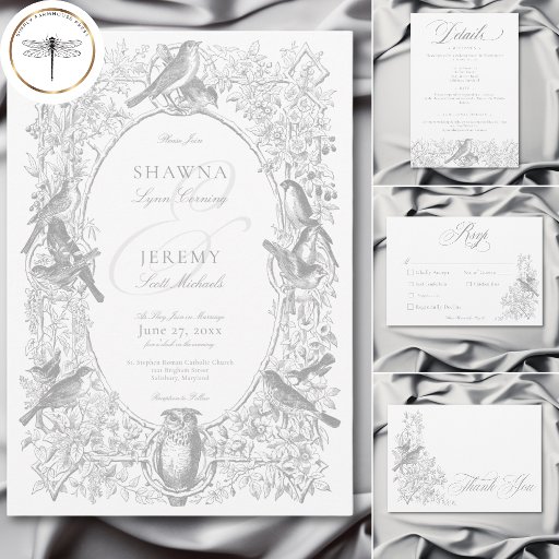Elegant Gray Chinoiserie Nature & Birds WeddingDiseñado por Kathe Santillo