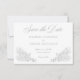 Aumente la celebración de su boda con nuestra elegante boda de chinoiserie, ahorrando la tarjeta de fecha, una combinación perfecta de elegancia intemporal y encanto rústico. Con un delicado diseño inspirado en la naturaleza, este diseño presenta un follaje vinícola intrincado, ramas elegantes y encantadores motivos de pájaro en una suave paleta gris plateado. El estilo chinoiserie le da un toque elegante y vintage, mientras que los elementos orgánicos crean un ambiente cálido y romántico, ideal para bodas en el jardín, ceremonias al aire libre o recintos en el campo. Establece el tono para una celebración refinada y relajada. Perfecto para parejas que buscan diseños bodas grises, bodas de chinoiserie, papelería boda inspirada en la naturaleza o elegantes diseños rústicos bodas. Creado por Simply Farmhouse Press.