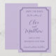 Boda elegante Guardar la tarjeta de fecha en tonos lilos con letras oscuras de lavanda tetadas con guiones y fuentes serif dentro de un marco