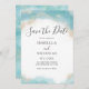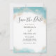 Reserva La Fecha Elegante Boda Moderna Azul Acuarela Oro