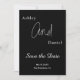 Esta elegante tarjeta de aviso de boda en blanco y negro es perfecta para una boda moderna. el diseño simple presenta elegante caligrafía blanca sobre un fondo negro.