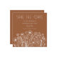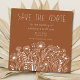 Fije el tono de su día especial con esta elegante tarjeta de flor silvestre naranja quemada en boho "Save the Date". El rico fondo naranja quemado se combina con un delicado arreglo de flores silvestres pintadas a mano en tonos cálidos de otoño como terracota, amarillo dorado y crema. La caligrafía moderna aporta un toque romántico y de moda, perfecto para los bodas rústicos, de jardín, al aire libre y otoñales. Este diseño minimalista y original es ideal para las novias boho que buscan algo elegante e inspirado en la naturaleza. Personalizar fácilmente el texto para hacerlo único suyo. Una manera impresionante de anunciar tu gran día con encanto y personalidad.