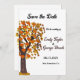 Esta elegante boda de otoño, salvo la invitación de fecha, es perfecta para un boda moderno de otoño. El diseño es sencillo y cuenta con árboles y hojas de otoño con una tipografía elegante en negro y marrón sobre un fondo blanco.