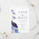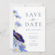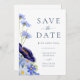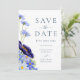 Hermosa y elegante manantial de acuarela pintada a mano y florales de verano con flores silvestres en azul marino, azul flor de maíz, azul polvoriento, azul opaco, morado, verde y amarillo, boda ahorrando la tarjeta de cita. Flores de pradera en el jardín que incluyen cosmos, flores de maíz, amapolas y olvidarme de las cosas con follaje. Plantilla fácil de usar con un guión moderno elegante de tipografía. Perfecto para una boda de verano o primavera con temática floral de color azul marino. Obra original de la artista Catherine Sweetman. Encontrar elementos coincidentes en la elegante suite boda azul floral de verano