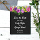 Esta elegante boda floral, salvo la invitación de fecha, es perfecta para un boda floral moderno. El romántico diseño presenta un colorido ramo floral de acuarela con una elegante tipografía blanca sobre un fondo negro.