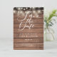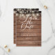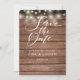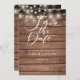 Este rústico salva la tarjeta de fecha con luces de cuerda y un guión elegante ahorra la fecha por encima de tus detalles en una tipografía elegante sobre un fondo rústico de paneles de madera. Diseñado por Thisisnotme©