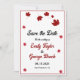 Esta elegante boda de otoño, salvo la invitación de fecha, es perfecta para un boda moderno de otoño. El diseño es sencillo, con hojas en caída burdeos y una tipografía elegante en negro y borgoña sobre un fondo blanco.