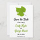 Esta elegante boda de otoño, salvo la invitación de fecha, es perfecta para un boda moderno de otoño. El diseño es sencillo, con hojas de otoño verdes y una tipografía elegante en negro y verde sobre un fondo blanco.