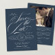Reserva La Fecha Elegante caligrafía azul de la Marina clásica