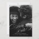 Elegante caligrafía Clásica Boda Guardar la Fecha. Un elegante diseño clásico del boda "Save The Date" con un texto de caligrafía de script de flujo blanco.
