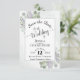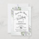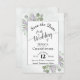 Esta boda, salvo la tarjeta de cita, es simple, rústica, elegante y hermosa. Incluye caligrafía de escritura de encaje con tus nombres, la fecha boda y la ubicación dentro de un marco blanco rodeado por una abundancia de hojas de eucalipto de color acuático pintadas a mano y flores de lavanda en un fondo de mármol. En la parte de atrás hay un pequeño ramo de madera con una cinta blanca y un arco. Una forma maravillosa de hacer que sus amigos y familiares sepan de su próximo boda.