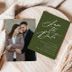 Reserva La Fecha Elegante caligrafía Olive Green Photo Boda