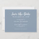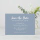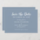 Elegante y delicado salven las tarjetas de fecha en azul polvoriento de moda con letras y guiones blancos crujientes. El diseño romántico sin fronteras le permite elegir fácilmente la forma de papel para su invitación de compromiso. Dos florecientes decorativos cada uno con un solo corazón delicadamente sobre el nombre de la novia y el novio. Para obtener resultados óptimos, omita las líneas y capitalice como en el ejemplo. Por favor, dirija preguntas o solicitudes de personalizado a invitationsuites@gmail.com