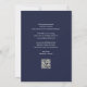 Esta elegante invitación de save-the-date azul marino se puede personalizar con su información en tipografía chic con el código QR de su sitio web de boda y detalles en el reverso. Diseñado por Thisisnotme©