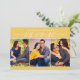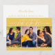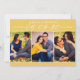 Estas modernas y elegantes bodas, que ahorran la fecha de las tarjetas de invitación, incluyen tres fotos de compromiso de 2 x 3" con la fecha que aparece en la escritura elegante. Personalice el texto de la plantilla de tarjeta en la parte delantera y trasera de la tarjeta para su gran día. Los colores amarillo y blanco marrón se pueden personalizar para coordinar con el esquema de color boda.