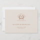 Se trata de una elegante, formal y clásica boda botánica escudo y monograma Guardar la fecha en un color crudo con una foto en la parte posterior de la tarjeta.