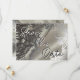 Un diseño de boda simple pero elegante que presenta un patrón de encaje negro con fuentes sofisticadas.