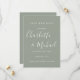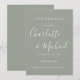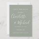 Diseñado para coordinar con nuestra colección de bodas Signature. Con nombres de estilo característico, esta elegante tarjeta de aviso de boda en plata salvia se puede personalizar con la información de su día especial de boda en letra blanca chic. Puede personalizar el fondo según el tema de color de su boda. Diseñado por Thisisnotme©