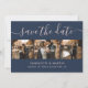 Elegante collage de fotos bodas modernos, azul marino y ondulados, ahorran las tarjetas de fecha con 4 imágenes y un moderno tipo de letra de guión. Personalice fácilmente esta elegante boda fotográfica y ahorre la fecha con sus imágenes y detalles de boda. Elementos coincidentes disponibles. Las solicitudes de los personalizados son bienvenidas.