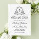 Reserva La Fecha Elegante Escudo floral negro Boda Monograma