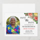 Diseño elegante, colorido y alegre con rosas de acuarela y 1 foto especial. Personalice los detalles para una tarjeta de 'Save the Date' única y chic.