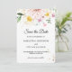 Traiga encanto y elegancia a su anuncio de boda con esta delicada tarjeta de Save the Date de acuarela. Con un hermoso ramo de flores rosadas, amarillas suaves y marfil con acentos salpicados de oro, este diseño es perfecto para bodas de primavera o verano. La paleta pastel y la disposición limpia exudan romance y estilo atemporal. Personalice fácilmente con sus nombres, fecha y ubicación para hacerlo único.