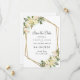 La tarjeta de "Save The Date" botánica elegante y chic presenta rosas blancas de boda románticas con toques de rosa sonrosado en un exuberante follaje verde sobre un fondo blanco atemporal. Un marco geométrico de cristal con forma de cristal de color dorado brillante proporciona un toque moderno. Personalice los detalles de la boda para sus invitados con letra y caligrafía elegantes en gris carbón. La parte posterior de la tarjeta es blanca. No dude en hacernos llegar sus preguntas a invitationsuites@gmail.com si tiene alguna duda sobre este o cualquiera de nuestros diseños.