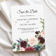 Anuncie su gran día con estilo con esta elegante tarjeta de Save the Date de acuarela, con flores románticas de color burgundy, rosa y azul marino con delicados acentos de salpicaduras de oro. Perfecta para bodas de otoño o invierno, esta plantilla ofrece una estética atemporal y moderna. Personalice fácilmente los nombres, la fecha y los detalles para crear un anuncio único que sus invitados adorarán.