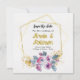 Anuncie su boda con este sofisticado save the date floral dorado. El diseño incluye un diseño floral y un marco geométrico. Este diseño es una opción verdaderamente única de save the date. Esta es una tarjeta clásica de save the date de boda que es parte de una colección de invitaciones de boda.