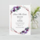 Guardar la fecha Elegante marco geométrico floral púrpura para la tarjeta de anuncio de su día especial. Esta es parte de la colección de boda y ducha de novia púrpura con este diseño si eres de los que ama combinar sus invitaciones, suministros para fiestas y accesorios de regalo.