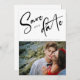 Haz que tu anuncio especial sea inolvidable con nuestra tarjeta de "Save the Date" de boda con foto y letra cursiva diagonal elegante. Esta tarjeta bellamente diseñada presenta una llamativa letra cursiva negra en diagonal que deletrea "Save the Date" en la parte superior, agregando un toque de elegancia moderna. Debajo del anuncio, sus nombres y la fecha de la boda se muestran en una fuente sans-serif elegante, espaciados perfectamente para crear un aspecto limpio y sofisticado.