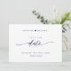Reserva La Fecha Elegante guión, blanco y naval, simple Boda