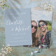 Con nombres de estilo de firma, esta elegante tarjeta de guardar la fecha en azul polvoriento se puede personalizar con la información de su día especial de boda en tipografía chic y su foto especial en el reverso. Diseñado por Thisisnotme©