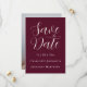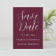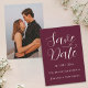 Moderna tarjeta de Boda de fotografía "Save the Date" - Elegante guión en Borgoña y crema de marfil. Anuncie su gran día con estilo con esta minimalista y romántica tarjeta "Save the Date", que presenta un rico fondo de vino rojo borgoña, acompañado de una tipografía de escritura elegante con crema de marfil suave. Este diseño combina el romanticismo atemporal con la simplicidad moderna, creando una primera impresión cálida y sofisticada para los huéspedes bodas. Personalice fácilmente con su propia foto, nombres y fecha de boda usando las sencillas herramientas de edición de Zazzle. La combinación de una fuente moderna y elegante y su foto favorita de compromiso hacen de esta tarjeta una invitación digna de ser apreciada por sus huéspedes. Perfecto para parejas que buscan una estética boda clásica y contemporánea, este versátil diseño se adapta a todo tipo de necesidades, desde bodas de viñedos hasta celebraciones de invierno. Las obras originales de la artista y diseñadora Catherine Sweetman, disponibles exclusivamente en Zazzle, garantizan que su "Save the Date" sea tan única como su historia de amor.