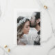 Esta simple boda fotográfica de moda, salvo la fecha en que la tarjeta plana tiene un diseño cálido y minimalista, enmarcada en el frente con un borde semitransparente que deja su foto parcialmente visible. Ofrece a este diseño único una suavidad y sensación de flujo, así como un aspecto angular claro y nítido. También ofrecemos este diseño con el borde en un color sólido sin semi-transparencia, así como un par de versiones de fotos completas, por lo que por favor consulte nuestra tienda si prefiere uno de esos lujos. La parte frontal presenta un moderno y animado texto Guardar la fecha por encima de sus nombres y fecha y ubicación boda en blanco. En la parte trasera, hemos definido el fondo como transparente, de manera que el color del papel simplemente sirva como el color de base. Puede elegir un color para el fondo, si lo prefiere. También puede editar el texto para adaptarlo a sus necesidades. Puede que desee eliminar un campo de texto que no necesite, o cambiar el color o la fuente de algún texto. Hemos elegido un tono gris para el texto de atrás. Usa las herramientas de diseño intuitivo, tu foto favorita y tu inspiración para hacer de esta elegante boda ahorrarte la tarjeta plana de fecha única que sea tuya!
