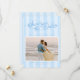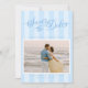 Anuncie su cita boda con nuestra moderna pero elegante boda Save The Date card en un tono tan bonito de azul pastel. Este diseño presenta rayas preppies en tonos azules en polvo en la parte delantera y trasera, que le dan un toque elegante y de moda, a la vez fresco y moderno. El diseño incluye "Save the Date" escrito en un guión caligráfico elegante con un toque nostálgico, vintage y un toque de fantasía. ¡Seguro que con esta tarjeta única salva la fecha a tus seres queridos!
