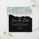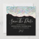 Reserva La Fecha Elegante Holográfico Sparkly Purpurina Marfil Negr